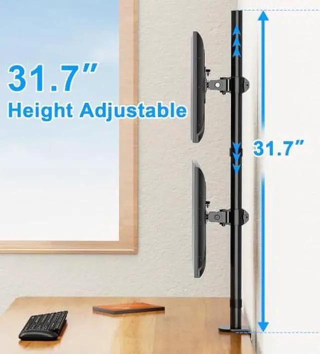 Ergonomic Viewing Experience - ErgoFocus dual monitor desk mount offers a screen tilt up and down -30degto+30deg,-90degto +90deg swivel, 360deg rotation, and easy height adjustment along the 31.7" center pole for better viewing. You can place the monitors in portrait or landscape orientation conveniently