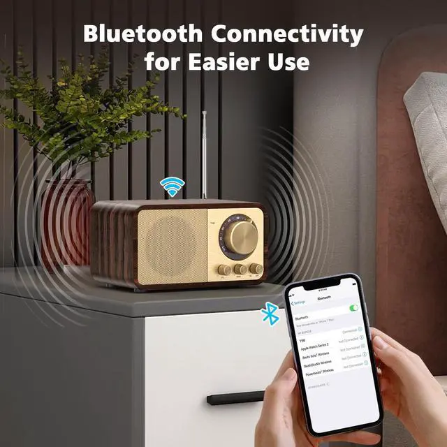 Bluetooth: This retro radio features an advanced Bluetooth 5.0 module for fast and stable pairing with smartphones, laptops and other Bluetooth-enabled devices with an effective range of up to 10 meters. You can easily play your favorite music via Bluetooth and enjoy a relaxing time.