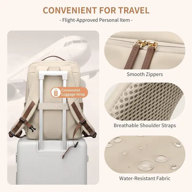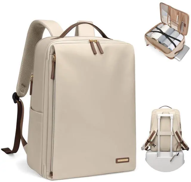 GOLF SUPAGS Stylish Laptop Backpack for Women Airline Approved Perfect for Work College and Travel Multi-Functional Casual Daypack Fits 17.3 Inch Notebook (Apricot)