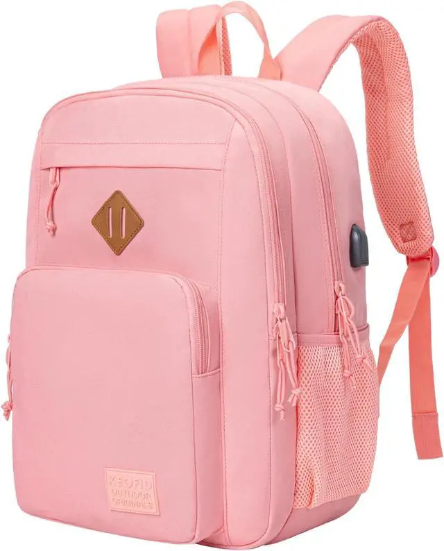 KEOFID Classic Travel backpack for Men and Women, Anti Theft Laptop Backpack with USB Charging Port for Work, Large Bag for College, Water Resistent (Bright Pink)