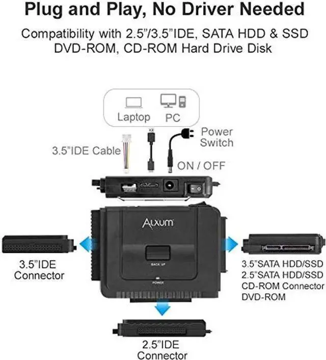 Alxum SATA IDE to USB 3.0 Hard Drive Adapter with Power, IDE to SATA Adapter External Hard Disk Reader for 2.5 / 3.5 inch IDE