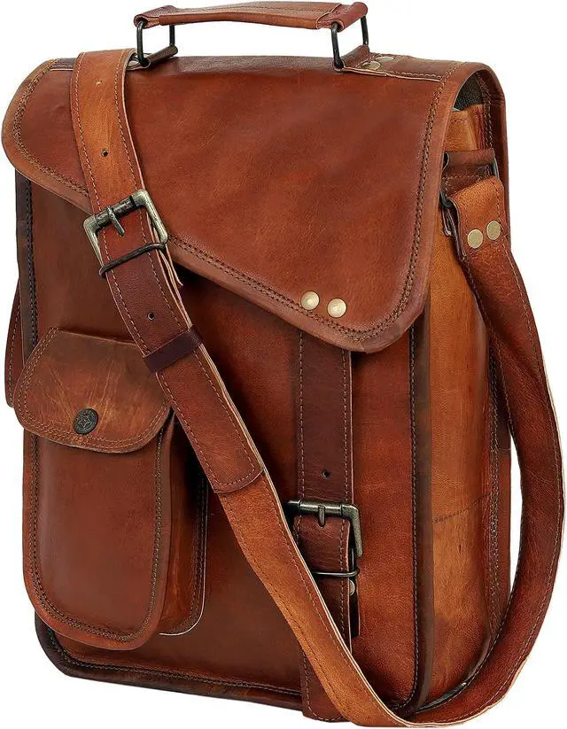 GENUINE LEATHER: 100% Goat Leather, natural & beautifully crafted; oil-rubbed for distressed and vintage looks, this iPad bag improves with age & smells just great! Handmade From Quality Goat Leather, Naturally Tanned (not dyed) That Softens and Darkens With Regular Use.