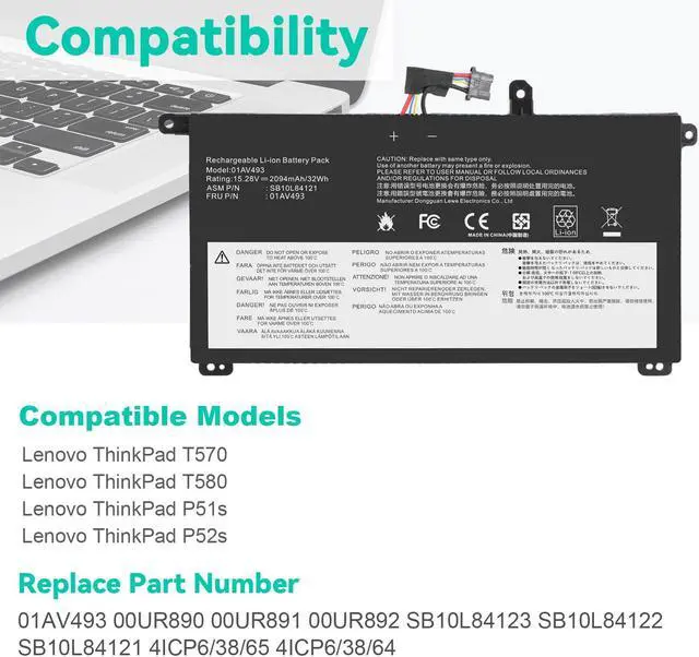 Compatible Laptop Models: ThinkPad T570 T580 P51S P52S Series Notebook.