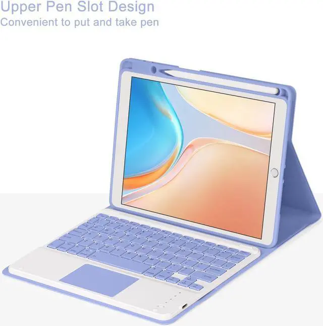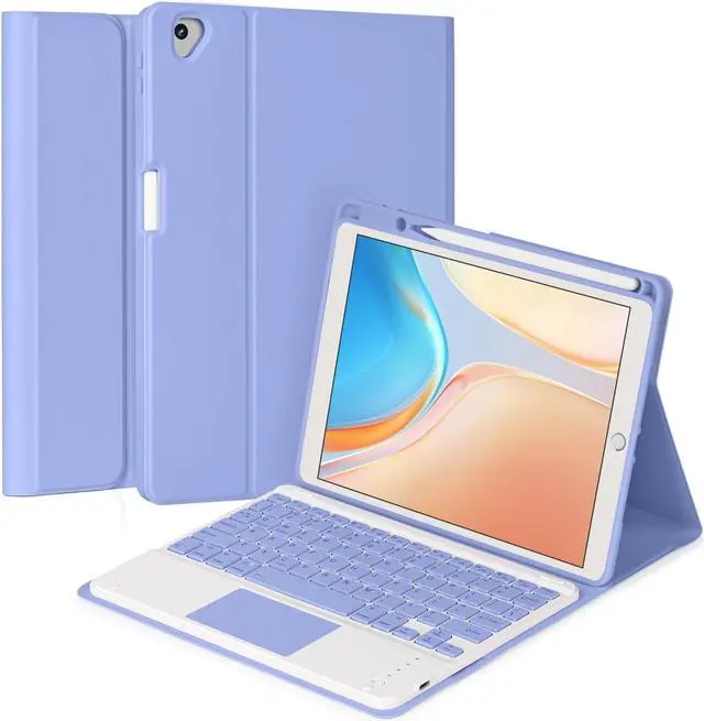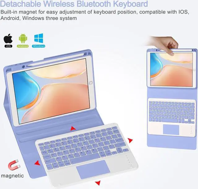 Eisuiyi Keyboard Case for iPad 10.2" 7th/8th/9th gen, Compatible with iPad Air3/Pro 10.5, Detachable Touchpad BT Keyboard, Magentic Protective Cover with Pencil Holder, Purple