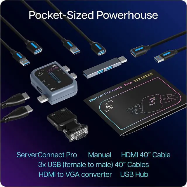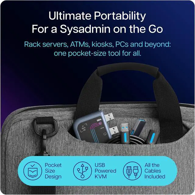 COMPACT AND POWER-EFFICIENT. The pocket-sized, USB-powered server tool doesn't drain your laptop's battery as it feeds directly from the server. The kit includes all necessary cables plus a USB hub to minimize port usage