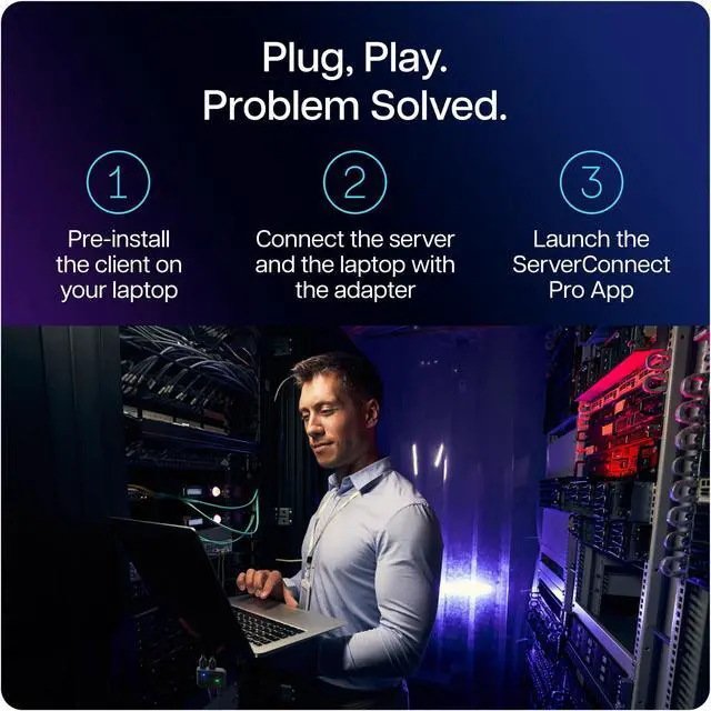 PORTABLE SERVER MANAGEMENT. Transform any laptop into a comprehensive server management tool with ServerConnect Pro: ideal for system admins who need to troubleshoot servers, ATMs, or PCs on the go without the bulk of traditional setups