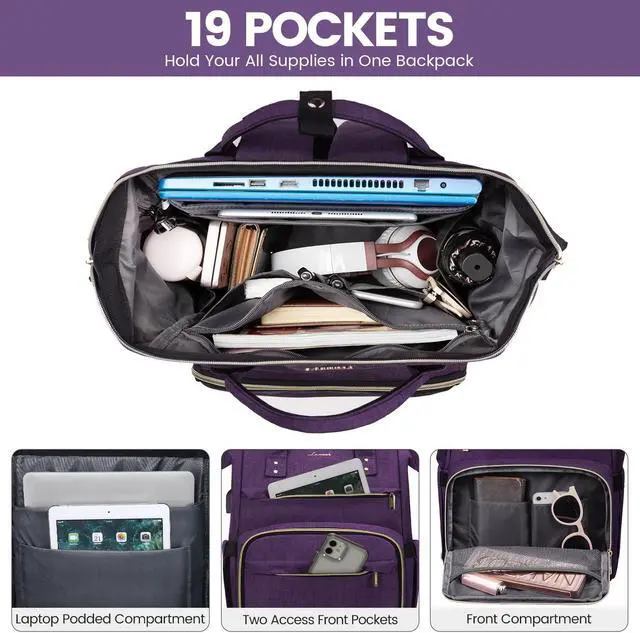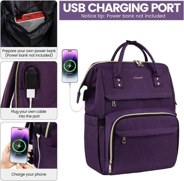 LOVEVOOK Laptop Backpack for Women,15.6 Inch Professional Womens Travel Backpack Purse Computer Laptop Bag Nurse Teacher Backpack,Waterproof Work Bags Carry on Back Pack with USB Port,Dark Purple