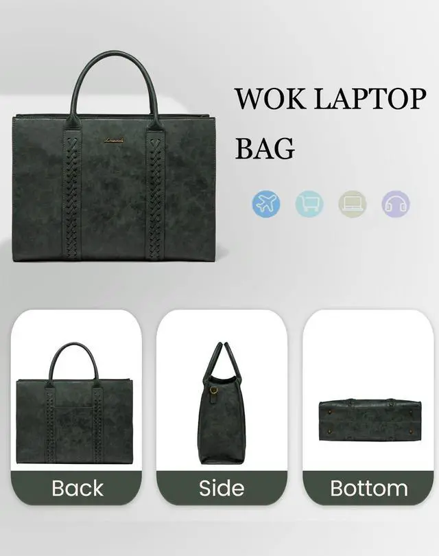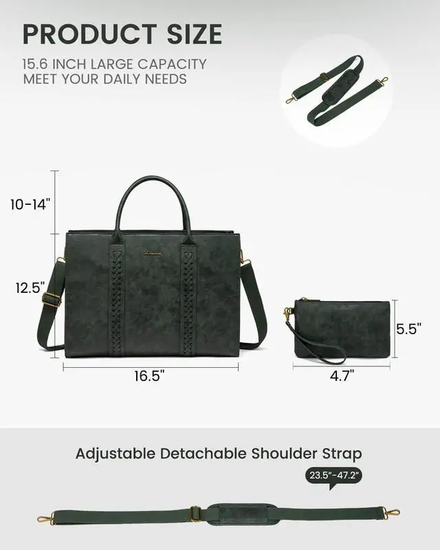 LOVEVOOK Laptop Tote Bag for Women, Vintage Leather Work Bags 15.6 inch Laptop Bag, Waterproof Computer Bag Business Office Briefcase, Green