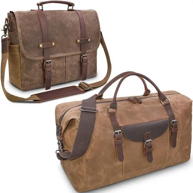 Mens messenger bag and travel duffel bag are made of superior crazy horse cowhide leather and water-resistant canvas for long-term use. Disordered wrinkles and scratches on the surface create a vintage and wild looking.
