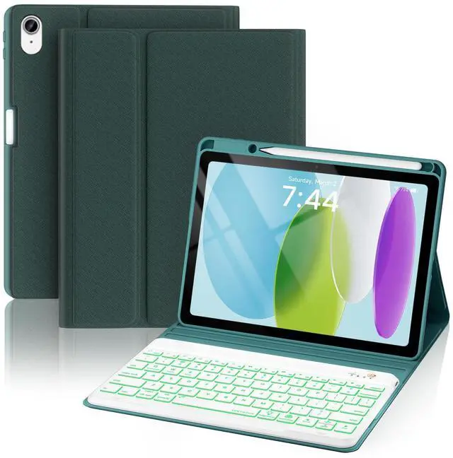 OYEEICE for iPad 10th Generation Case with Keyboard 10.9 Inch - 7 Colors Backlit Wireless Detachable Folio Keyboard Cover with Pencil Holder for New iPad 10th Gen 2022 - Teal