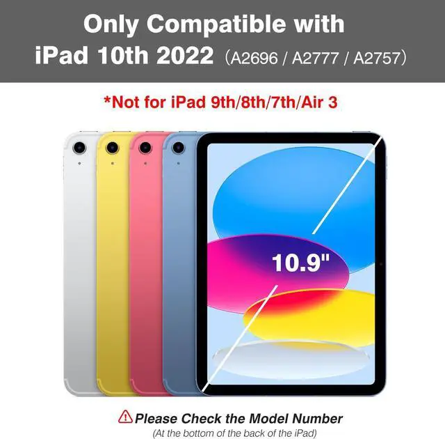 [(Versatile iPad Keyboard Case)] No pen or charger included! Enhance your iPad experience with this versatile iPad keyboard case, designed specifically for iPad 10th(A2696, A2757, A2777). It features a magnetic detachable keyboard and 3 grooves design for easy typing and convenient use. Very suitable for home, school, office, travel, or business.
