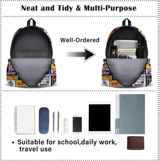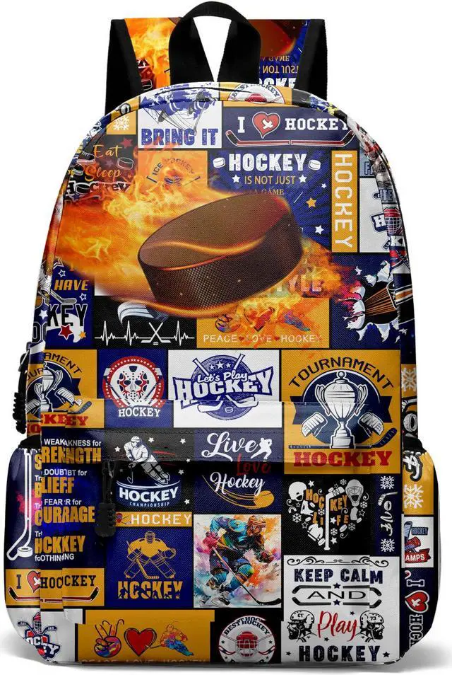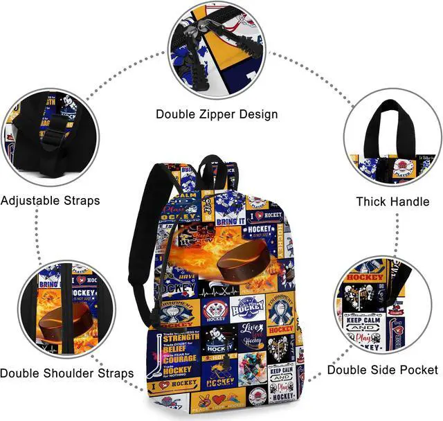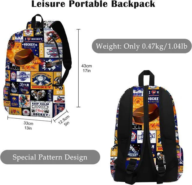 <4> The Rovozar Ice Hockey Theme Backpack is not just a bag; It's a statement piece that reflects your love for the game. Stand out from the crowd with this eye-catching and functional accessory that combines style and practicality seamlessly. Whether you're heading to school, camping, or traveling, this Ice Hockey backpack is a reliable companion for kids, boys, or men on the go.