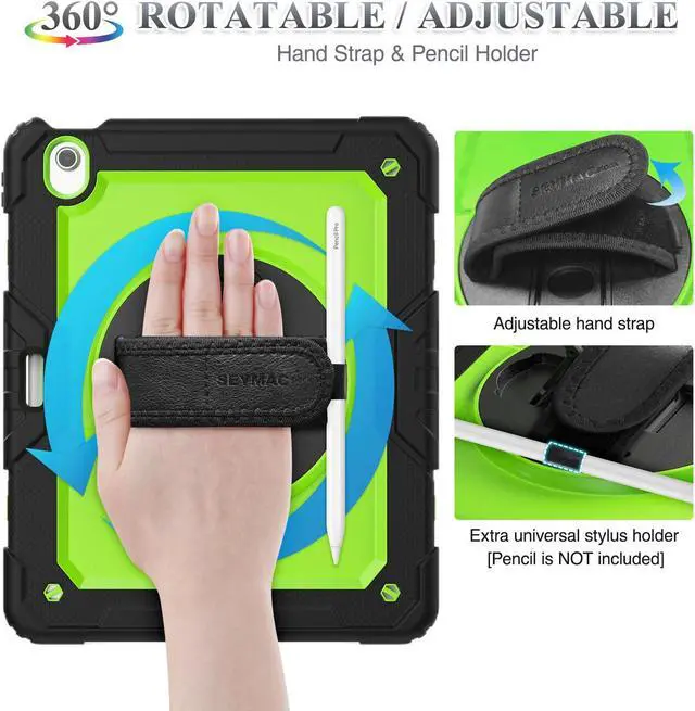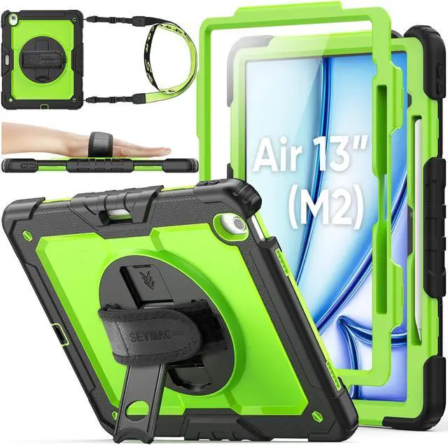 SEYMAC stock Case for iPad Air 13 inch Case M3/ M2 (2025/2024), for iPad Air 6th Generation, Heavy Duty Protective with Pencil Holder, Screen Protector, Stand, Hand Strap, Shoulder Strap, Green