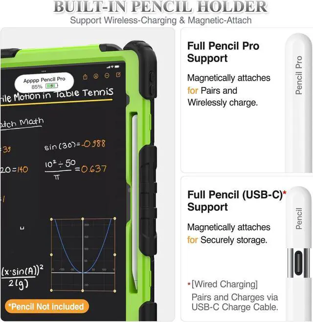 Versatility Stand & Pencil Holder: With 360deg rotating adjustable kickstand stable at multi-angles, case for iPad Air 13 inch M3 M2 for viewing, typing or movie watching; With pencil holder easy storage for note-taking, case for iPad 13 Air case suited for classes/meetings, works or play with-kid