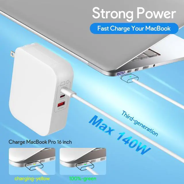 [(Ultra-Rapid Charging)] : 140W /28V / 5A max output and USB Power Delivery 3.1, you can full charge your 2021 Mac Book Pro 16" in only 1h 25 mins and charge it up to 50% in only 27 mins as fast as to full charge a cellphone. Notice: include USB C to Mag 3 Cable.