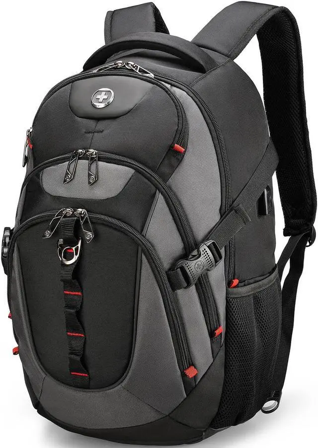 Swissdigital Design Business Laptop Backpack with Smart USB Charging Port, Travel Backpack Fits 15.6 inches laptops, Water Repellent College Backpack for Men Women (SD803-02 Black/Grey)