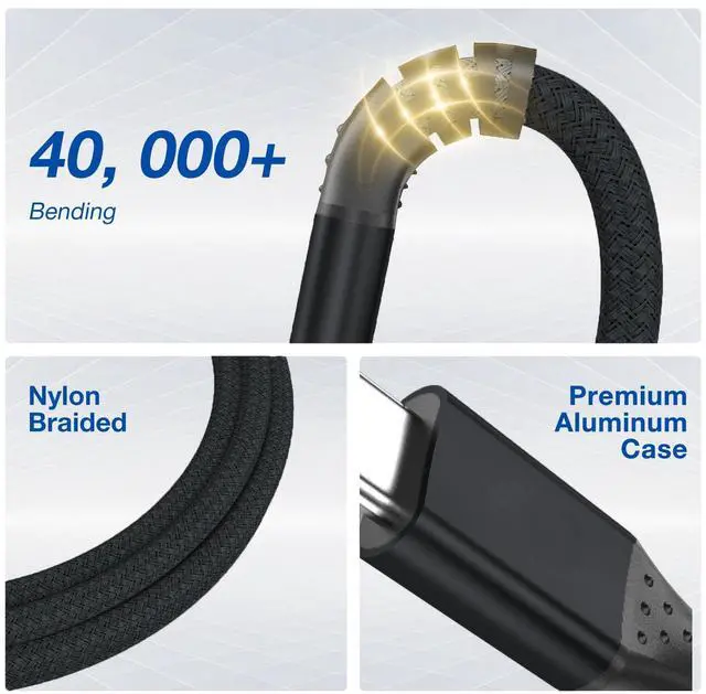 [(240W USB C Cable)] Supports PD3.1 fast charging protocol;Supports fast charge up to 240W(48V 5A) when paired up with a compatible cable and charger. Backward compatible with 200/170/140/100/60/18W power devices.(Note: Charging speed may be dependent on the host device's charging capability).