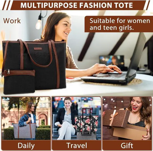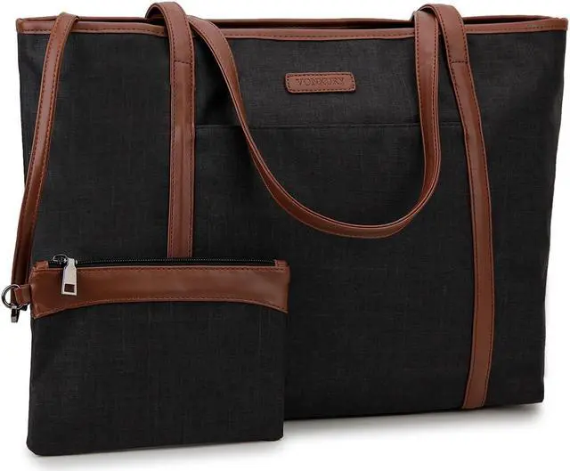 VX VONXURY Laptop Tote Bag for Women, Large Teacher Bag Work Bag fit 15.6 Inch Computer (Black Brown - 15 Inch)