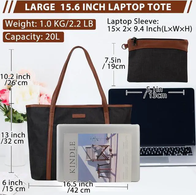 PRACTIRAL&DURABLE: The fashion laptop tote bag is designed for travel and daily use in a variety of colors. Made of water resistant lightweight polyester and soft faux leather, it is classic and timeless. Spacious capacity with padded laptop (fits up to 15.6 inches) and tablet sleeves making it perfect to carry as a work bag or tote bag.