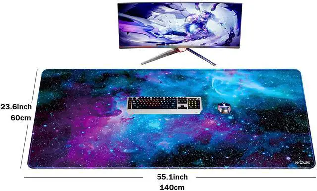 Extra Large Size for Full Desktop: Spanning 55.1"x23.6" (140x60cm) mega mouse pad offers extra large dimensions to accommodate keyboard, mouse, monitors, and more. The extended desk mouse pad eliminates clutter, unifying your gaming desktop or office workstation under an universe style surface.