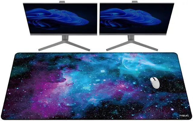 Extra Large Size for Full Desktop: Spanning 59.1"x27.6" (150x70cm) mega mouse pad offers extra large dimensions to accommodate keyboard, mouse, monitors, and more. The extended desk mouse pad eliminates clutter, unifying your gaming desktop or office workstation under an universe style surface.