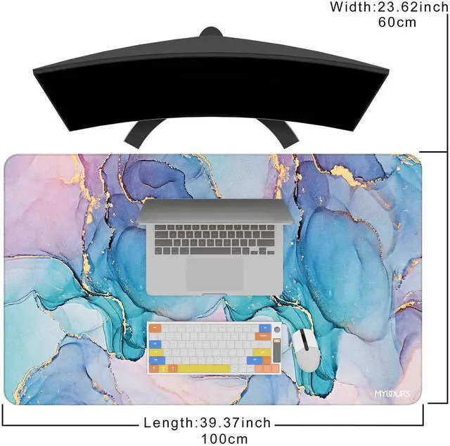 Mydours 40" x 24" Large Extended Gaming Mouse Pad with Stitched Edges, XXL Computer Mouse Mat, Premium-Textured Desktop Protection Desk Pad, Non-Slip Rubber Base Mouse Pad for Office and Home, Marble