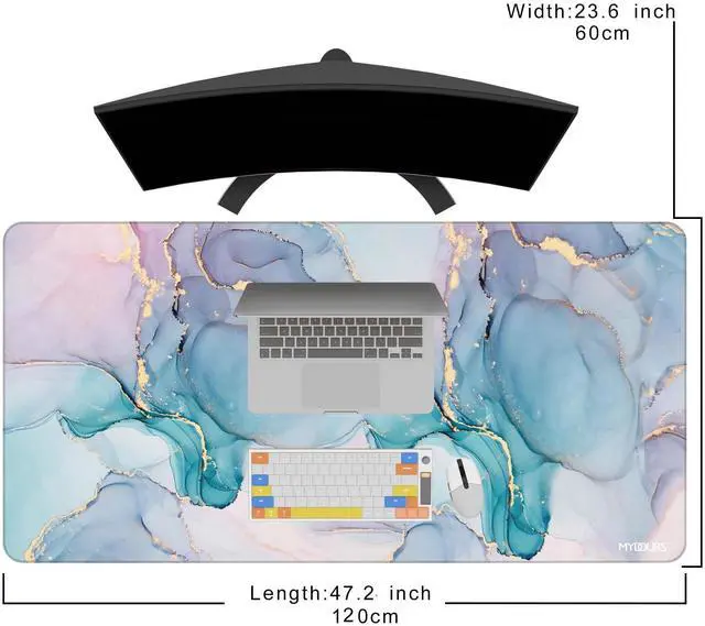 Mydours 48" x 24" Large Gaming Mouse Pad, Extended Desk Pad for Keyboard and Mouse with Non-Slip Rubber Base, Stitched Edges Computer Mouse Mat, Office Desk Mat Mousepad for Desktop & Laptop, Marble