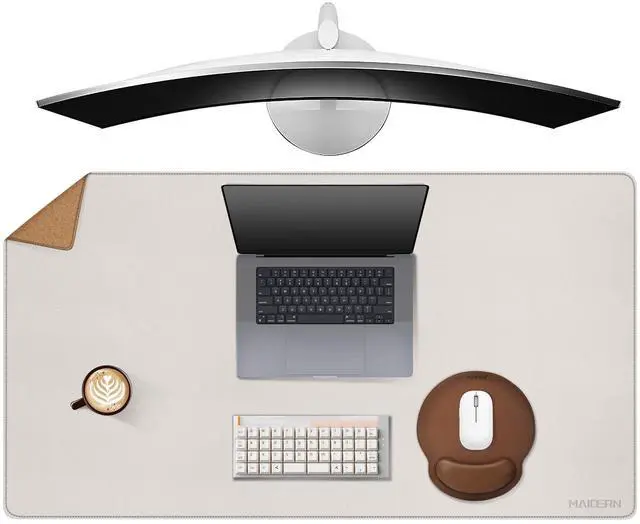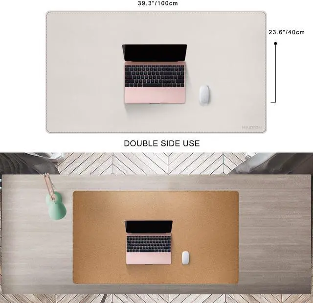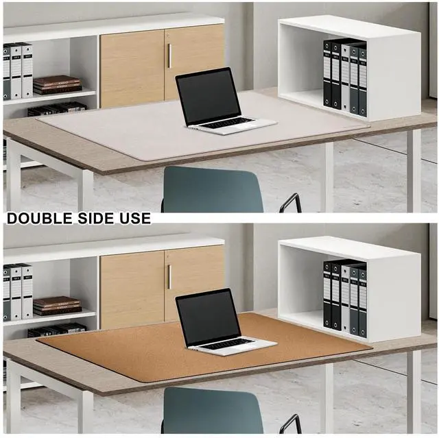 ECO CORK & PU LEATHER DUAL SIDED MATERIAL: One side of desk pad is PU leather, high-quality material, durable and comfortable. The other side of desk cover mat is eco cork, from natural wood, eco-friendly. Dual side are available for you use.