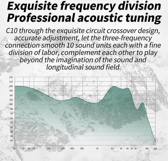 [(10 Hybrid Drivers IEM)] CCA C10 earphone has 10 drivers hybrid technology. 1 Dynamic&4 Balanced Armature each ear exclusively dedicated to silky highs, detailed mids, and Moderate bass. High-intensity resolution, rich sense of quality, full of vocals. True pure listening experience for you. Every nuance comes alive like hearing your favorite music for the first time.