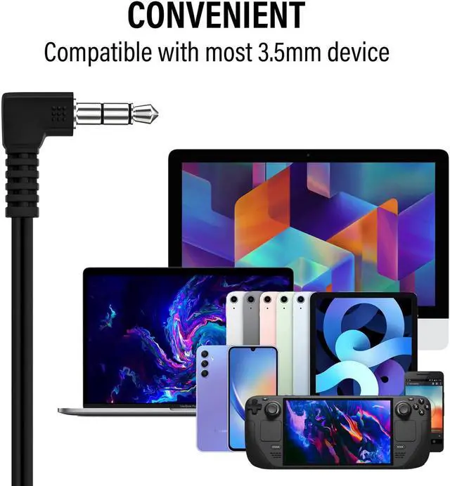 4-foot cord is suitable for most uses; 3.5mm right-angle plug will connect with all standard audio jacks and resists accidental pull-out. Compatible with iPhone, iPad, Chromebook, Laptop, PC