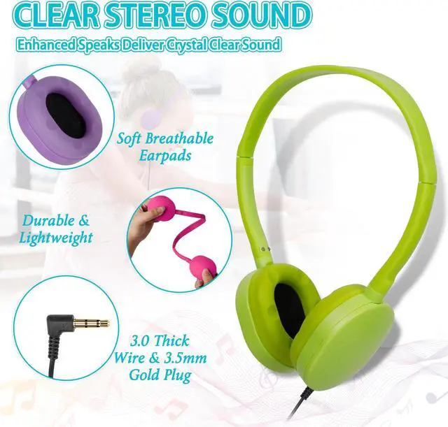 [(3.5mm L-shape jack)] Headphones for class set is not easy to break, the L-shape jack design makes the jack stronger and not easy to be damaged, the 3.5mm jack can be adapted to your pad, phones, computers and other devices