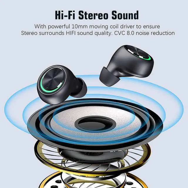 [(Quick Charging: Our Wireless Earbuds Bluetooth are equipped with the best TypeC fast charging cable on the market. With a transmission speed about 2 times faster than traditional Micro USB, you can fully charge the earbuds in about 1 hour. Enjoy uninterrupted listening experiences without long waiting times.
