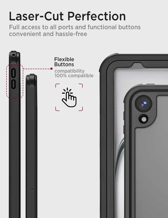 Attention: the case already comes with a built-in protective film! Please be sure that your tablet doesn't have any other films attached before using it. Support ipad wireless charging!!! Waterproof ipad air case does not support fingerprint unlocking!!! ^^ Transparent and No-yellowing, 360 Strong protectionThe iPad Air 13-inch tablet case is transparent with black border. The clear PET front cover and hard PC border, as well as the transparent PC back cover and soft TPU border, wrap the tablet 360 without dead angles in all directions. This shockproof design protects the tablet from damage and scratches caused by falling. The no-yellowing double-sided transparent design can provide you with a better visual experience when using it. ^^ The highest level of IP68 waterproofingThe case supports deep diving up to 2 meters for up to 1 hour, and the waterproof design meets the highest level of IP68, making it suitable for safe underwater shooting and recording. MIL STD 810F-516 certification can withstand a drop of 6.6F /2M, protecting the iPad from damage from high-altitude falls. Perfect for diving and other water sports, you can also take underwater photos and videos.