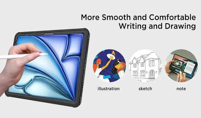 ^^ Anti Fingerprint and Precise CutoutsDue to its 360 enclosed design, it ensures that even if you frequently use tablet, the case will not leave fingerprints. The ultra-thin and tactile iPad Air 13-inch case is designed with precise cutouts for quick access to all buttons (charging port, speakers, camera, volume keys, power key). There is a 3mm thick protrusion on the edge of the camera and screen casing to protect your iPad Air from scratches. ^^ PET Screen SaverThe iPad Air 13-inch case already comes with a built-in PET screen protector, allowing you to slide the screen sensitively during use, and providing you with clear vision and preventing screen scratches. Please ensure that your tablet does not have any other screen protectors before installing our case to avoid affecting sensitivity. It is not only suitable for daily activities, but also suitable for outdoor scenarios such as hiking, traveling, skiing, and swimming.