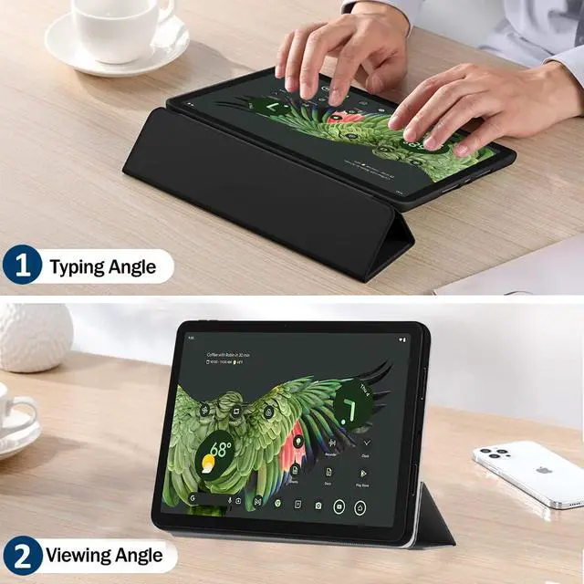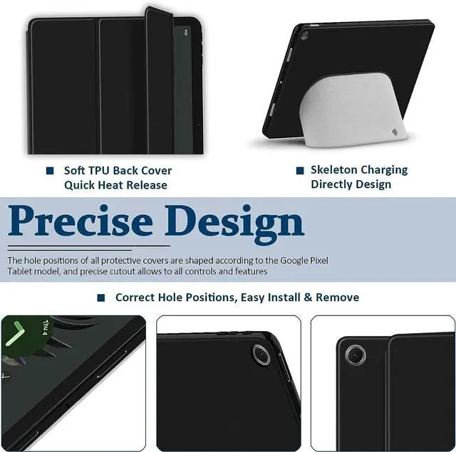 ^^ Different Viewing Angles--Trifold Stand FunctionOur Google Pixel Tablet case adopts trifold stand design with dual stable standing provide two positions for comfortable viewing or typing, you can have an excellent experience when you are relaxing or working. ^^ Ultra-Thin Precise DesignThe thin and slim frame is formed in one piece to create a bare metal feel, which is light and pure, adds minimal bulk while offers your device great protection. The hole positions of all protective covers are shaped according to the Google Pixel Tablet model, and precise cutout allows to all controls and features.