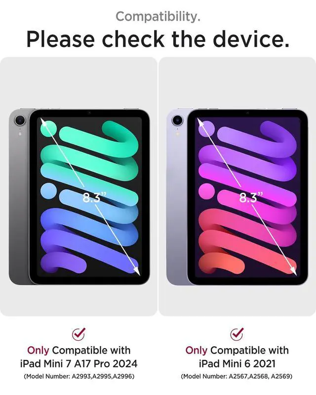 Generation 2021 (iPad models: A2993 / A2995 / A2996 / A2567 / A2568 / A2569), please check the back bottom of your iPad to find the model number. This iPad mini 8.3 inch case does not fit any other models (Note: Apple pencil is not included)