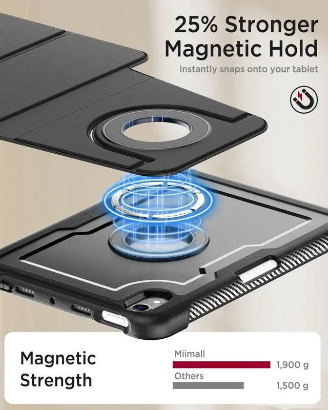 Rotating Stand]: Miimall ipad mini 7 magsafe case comes with a completely removable magnetic folio cover and a functional 360 degree swivel stand. And an anti-slip tab design of the ipad mini 7 case with stand offers more stable vertical/horizontal viewing angle to meet the needs of different scenarios. You can even magnetically attach the iPad to any iron metal surface, such as a fridge(Note!!! Not for Magsafe charging!! ) ^^ [Premium Materials & Sturdy Protection] Miimall ipad mini a17 pro case rugged is built with a combination of hard PC back, shockproof TPU frame and premium textured PU leather front cover, features resistance to fingerprints and easy wipe cleaning, and this ipad mini case a17 protects your iPad well against drops and bumps. Meanwhile, this ipad mini 6th generation case also offers seamless protection with precise cutouts for the speaker, camera, buttons and other ports ^^ [Built-in