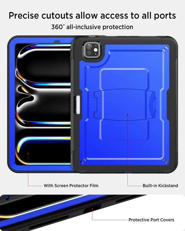 Versatile Stand: Equipped with a integrated sturdy stand, ipad pro 11 case offers reliable, slip-free stability for your tablet. Enjoy a shake-free viewing experience during movies or meetings, with your device held securely in place ^^ Hybrid 3-Layer