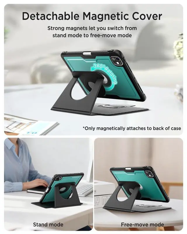 Compatible ModelThe case ONLY fits for iPad Pro 13 inch (M5) 2025Model number: A3360, A3361, A3362, iPad Pro 13 inch (M4) 2024Model number: A2925, A2926, A3007). Please pay attention that the case dose not compatible with any other tablet!!! Please note that the pencil is not included! Enjoy iPad Pro 13 inch sleeve with pen holder convenient, a strong and more comfortable holding feeling thanks to amazing case design! ^^ Magnetic Mounting 360 Swivel KickstandThe ipad 13 pro shell with stand design features a wide cover and strong magnetism, with two vertical grooves allowing you to use the device at a comfortable angle in horizontal mode, making it good for painting, writing, and other creative work. It can also be used in portrait mode vertically, with stable support at the bottom, making it good for reading, browsing, and FaceTime calls ^^ Ultra Stable SupportThe back of the heavy duty ipad pro 13 inch case para has a powerful magnetic suction function. Allows ipad pro covers para 13 inch to be rotated 360 and placed on the bracket for flexible flipping and use. Designed with a wide lid and strong magnetic stand, this case can remain stable on any surface, whether on a table, sofa, bed, or on your lap, ensuring it stays upright without slipping ^^ Built-in Pencil HolderThe shock proof ipad pro m4 thirteen inch forro para with kick stand built-in pencil holder.
