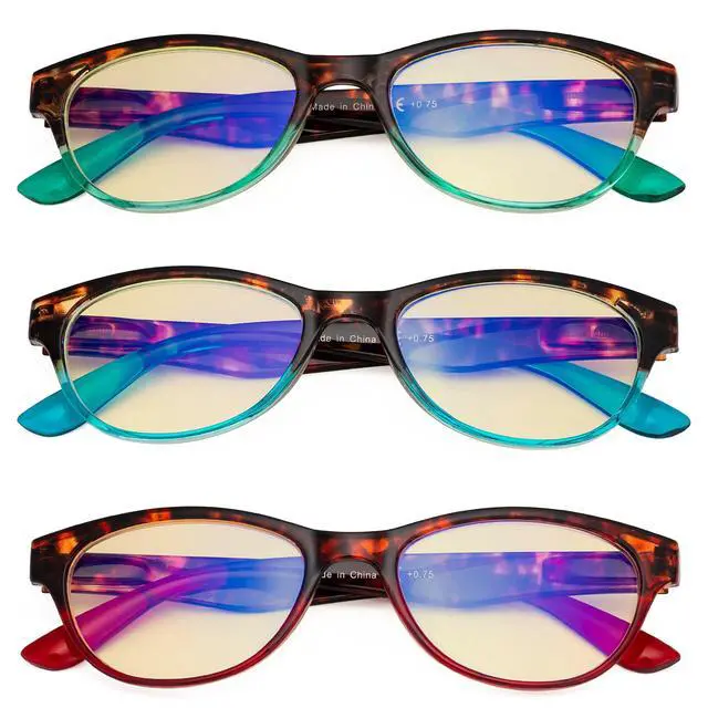• Anti Blue Light Reading Glasses - blue light blocker and UV400 Lenses, Alleviates visual fatigue and discomfort from browsing mobile phones, tablets, gaming and working under fluorescent lights with UVA and UVB protection and glare reduction