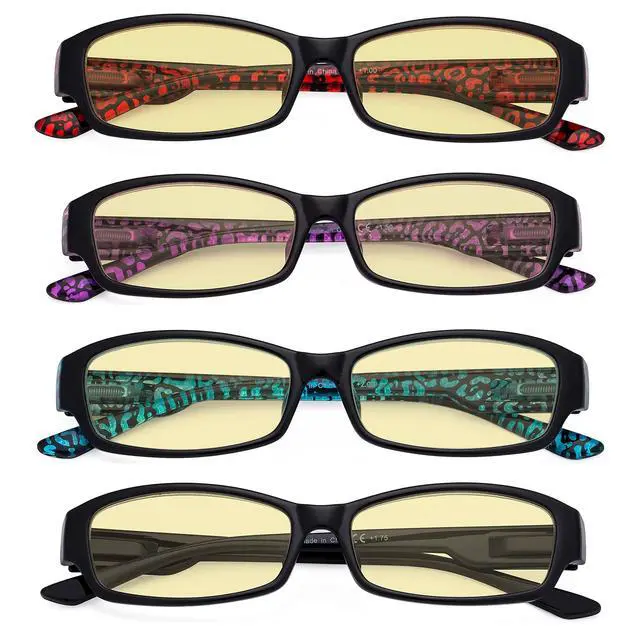 Eyekepper 4-pack Reading Glasses Blue Light Blocking for Women Yellow Tinted +1.00
