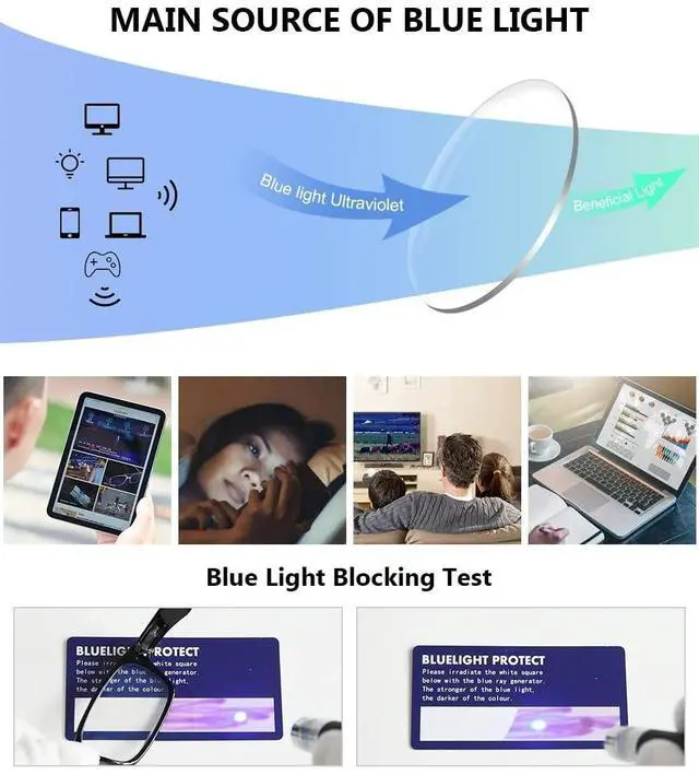 Occupational Safety & Health Administration: The preferred viewing distance for VDTs ranges between 18 and 24 inches ( 45.72 and 60.96 centimeters, respectively). FEATURES AND BENEFITS Filters 100% of the most damaging low-level blue and nearly 40% high energy visible light from tablets, phones, TV, computers and more. Our lenses code is BB40 for the Eyekepper violet block glasses. Anti fatigue Anti jet lag blue blocker Get maximum protection with ourpatented, multi layer coating designed specifically to reduce glare, reflect blue light away from the user and relieve long term eye strain caused by excess electronic device use. Whether you are looking for computer glasses for the office or a late night Netflix binge. Eyekepper glasses will give you the premium protection you are looking for If you are unfamiliar with blue light it's right next to UV light on the spectrum of light. It is comprised of very high energy and a low wavelength very similarly to UV light. All of our electronic devices with a back-lit screen give off large quantities of blue light (Iphones, Ipod, Laptop, Computer TV. ) This blue light messes with our internal clock making us think it's mid day when really it can be closer to night and stops our body from naturally producing the melanin that helps us fall asleep late at night CARE To avoid damage, never clean your computer glasses with paper towels or clothing or alcohol, and also avoid using household detergents or soaps.