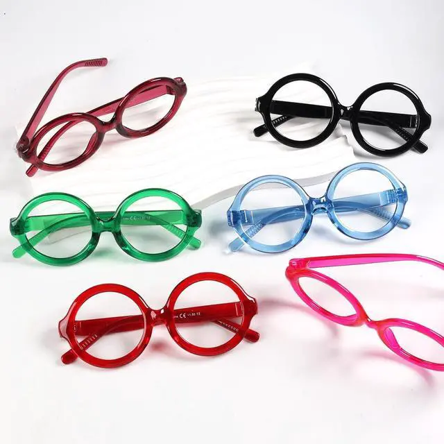 Eyekepper Huge Round Blue Light Blocking Reading Glasses Screwless Spring Hinges Metalless 6 Pack Readers for Women +2.25