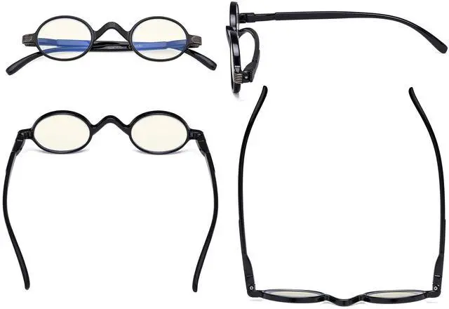Eyekepper Blue Light Filter Glasses - Computer Reading Glasses - Small Round Blocking Readers Reading with Spring Hinges - Black +1.75