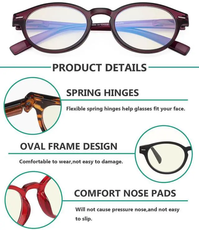 Pairs Computer Readers: Get 10 pairs of stylish blue light blocking glasses with oval frame. These blue blockers glasses come in a variety of colors to suit your style. You can choose a pair that matches your outfit or mood.