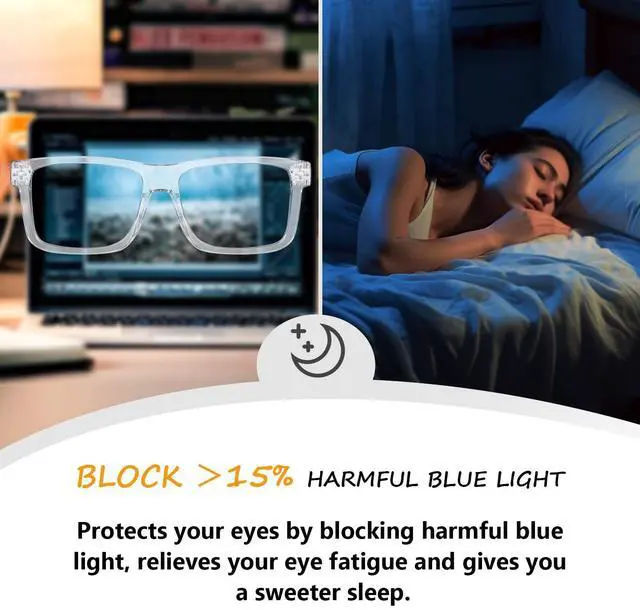 [ SLEEP BETTER ] - Eyekepper blue light blocking reading glasses are specifically designed to help you sleep by blocking harmful blue-light. The clear lenses utilize proprietary filtering technology to specifically target and block blue light in the lower range of the spectrum, allowing you to sleep better and wake up refreshed. These blue blockers reading glasses help alleviate eye strain resulting from extended use of digital devices, ensuring a healthier screen experience. ^^ [ PATENTED ] - The metalless & screwless blue light blocking reading glasses are a patented design from Eyekepper. They have a unique frame feature, which means there is no metal in the entire set and no screws in the spring hinges.