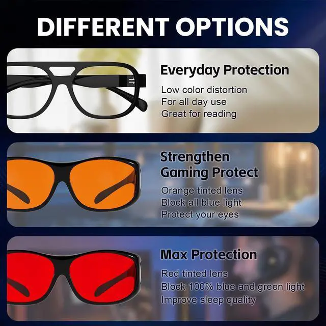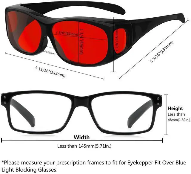 DISCOVER THE EYEKEPPER DIFFERENCEProvide the quality and ex-factory price fit over computer glasses and customer serviceMeet the online test for blue light blockingTR90 frame wera over blue light blocking glasses for computers, T. V. 's or phonesFEATURES AND BENEFITSAnti-UVAnti-FogReduced glareMassive reduction of blue lightGet maximum protection with ourpatented, multi layer coating designed specifically to reduce glare, reflect blue light away from the user and relieve long term eye strain caused by excess electronic device use. Whether you are looking for computer glasses for the office or a late night Netflix binge. Eyekepper fit over blue light blocker computer glasses will give you the premium protection you are looking forBlue light blockingLifetime breakage scratches on frame & lenses90 days money backINCLUDES1*EVA zip case1*Microfiber pouch1*Cleaning soft clothCARETo avoid damage, never clean your computer glasses with paper towels or clothing or alcohol, and also avoid using household detergents or soaps.