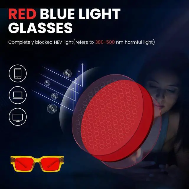 ^^ [Easy to Use] - Simply wear them 2-3 hours before bedtime without requiring any complex adjustments or additional steps, seamlessly integrating into nightly routines. ^^ [Precautions] - Avoid wearing red-tinted blue light blocking glasses while sleeping to prevent discomfort and potential damage to the glasses.