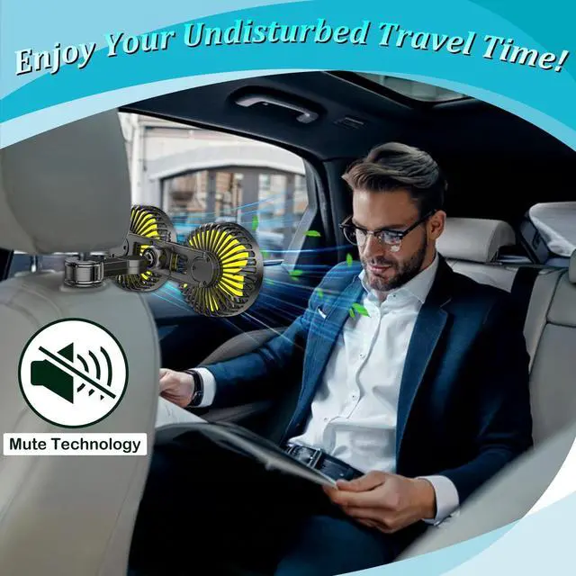 ^^ Upgraded Mounting System: Engineered with premium ABS plastic, our fan for car features a vibration-proof clamp that locks securely onto headrests. Enjoy tool-free installation/removal in seconds. Foldable arms collapse the unit for compact storage when idle. The 70.8 -inch extended cord powers both fan heads from any USB port. ^^