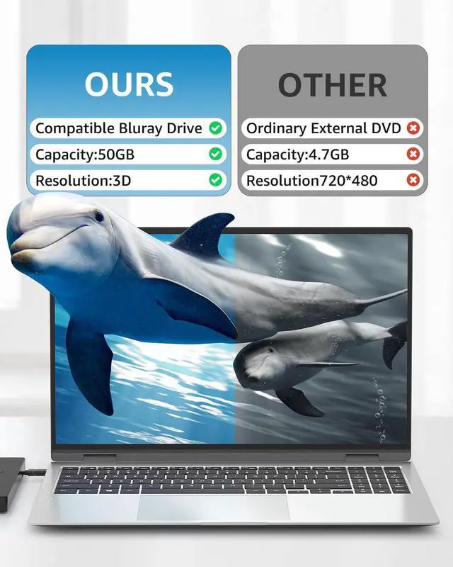 Immersive 3D HDThis external Blu-ray drive supports 3D playback, providing you with lifelike clarity that comes close to 4K quality. However, it is important to note that the drive cannot play 4K Ultra HD Discs.Make sure your computer's playback software supports the Blu-ray format. Compared to a standard external Blu-ray drive, this product Support 50G BD disc reading & writing.